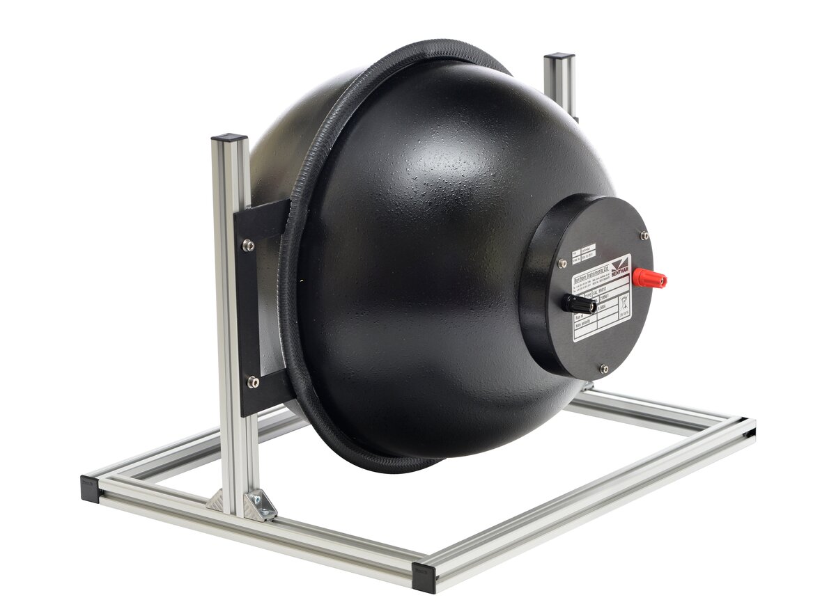 The 300mm diameter SRS12 features a BaSO4 coated integrating sphere complete with baffled, grit-blasted 100W QTH lamp and 100mm diameter window to deliver exceptional radiance uniformity. Stable lamp operation is ensured in employing the lamp with the 610 precision constant current DC power supply.